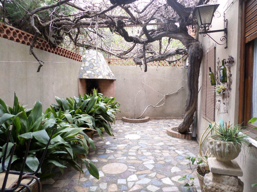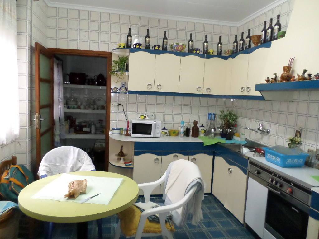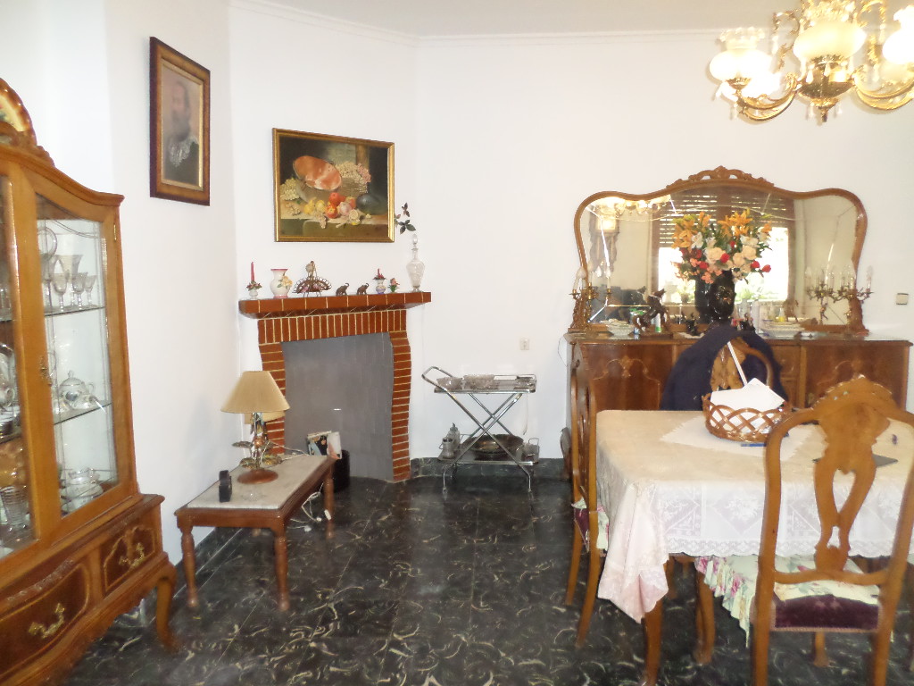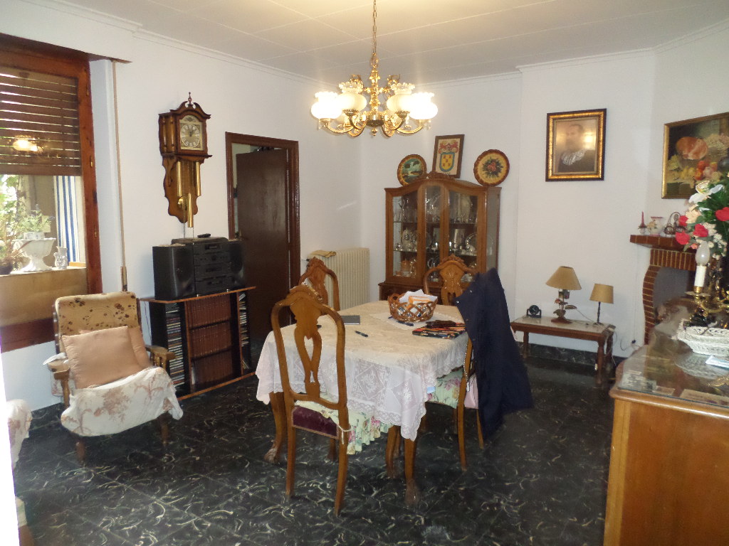 En planta baja está el salón hacia la calle, comedor amplio, cocina con despensa, baño con plato de ducha y patio con chimenea al fondo, desde el patio hay una escalera que sube a una terraza de la primera planta.