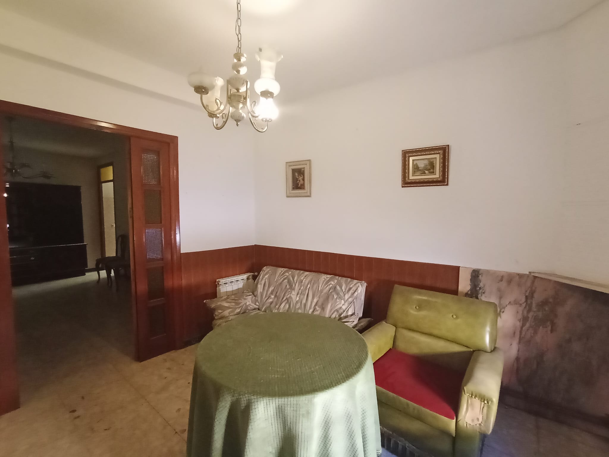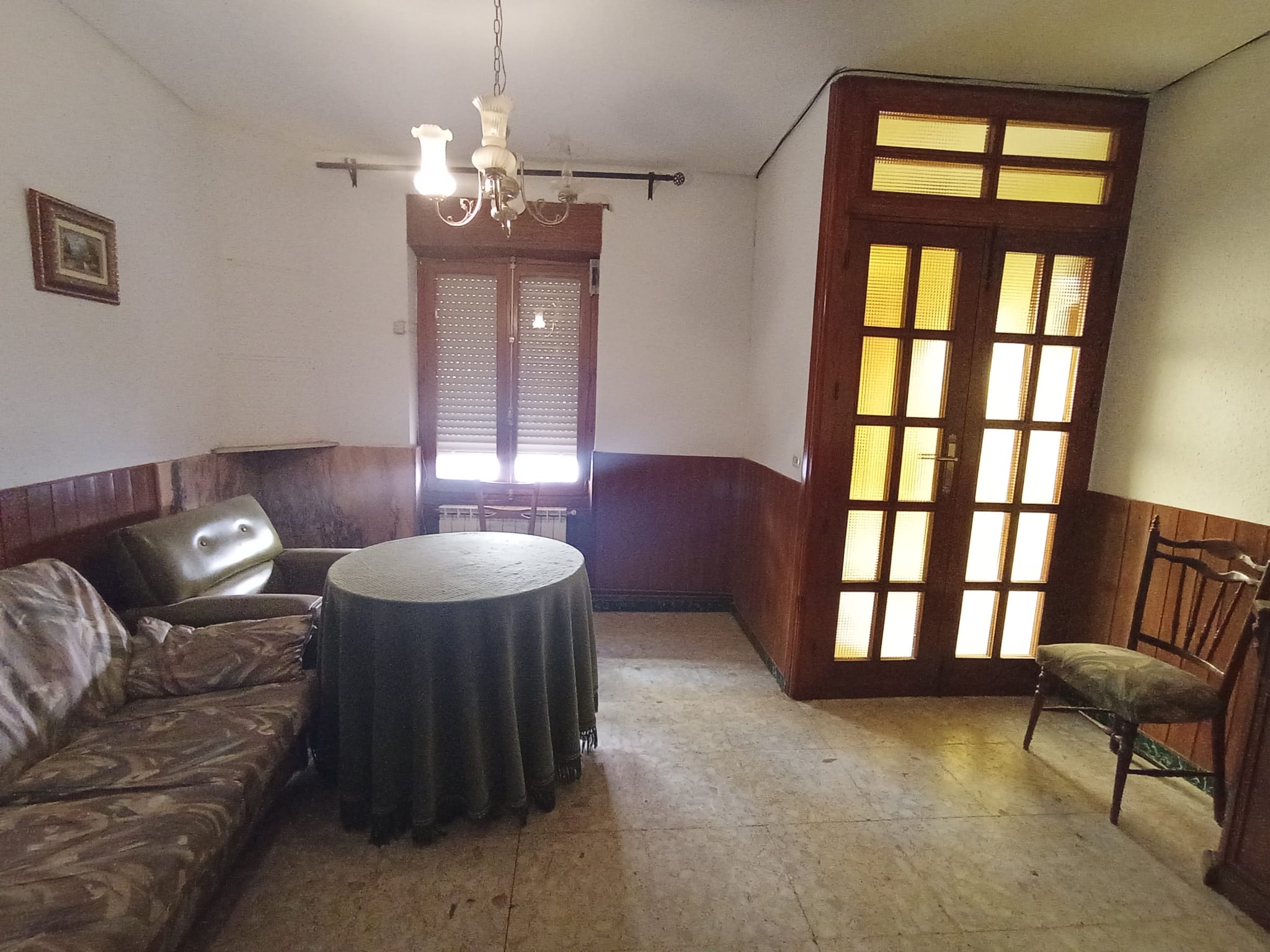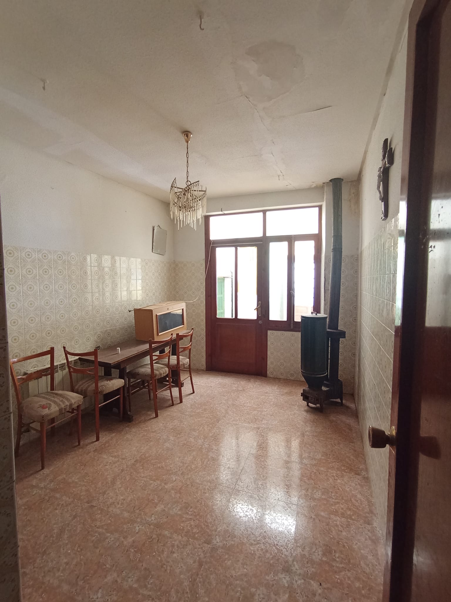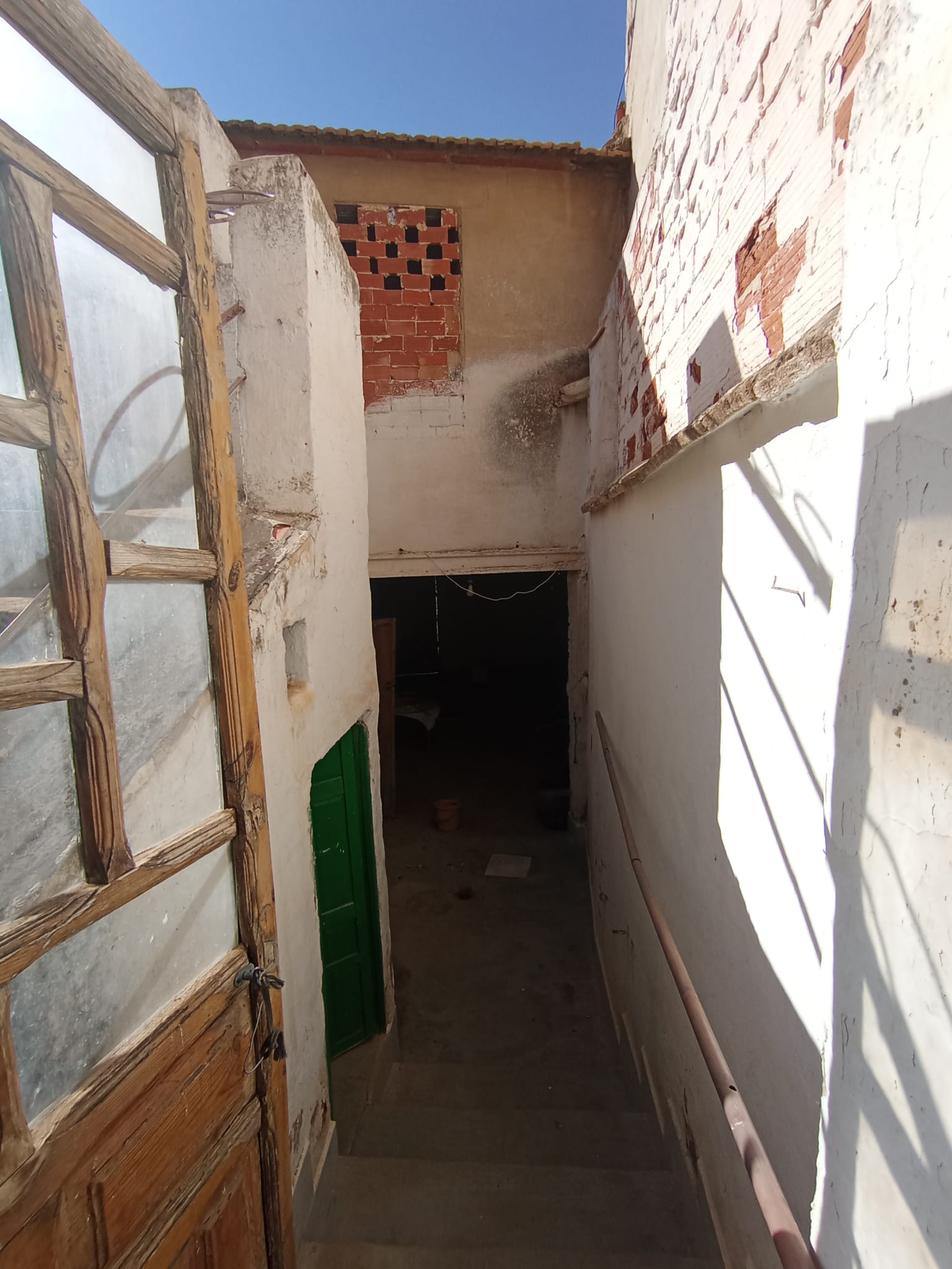 Consta de 310 metros construidos. La planta superior se encuentra sin edificar. Y, en planta baja hacia calle Dolorosa tiene la entrada hacia la vivienda que se distribuye en salón, comedor, 3 dormitorios, cocina con despensa, una especie de lavadero cubierto con 2 puertas, una para acceder a la escalera que sube a la primera planta y la otra con salida hacia el exterior (patio + porche) orientado hacia el estrechillo de la Iglesia.