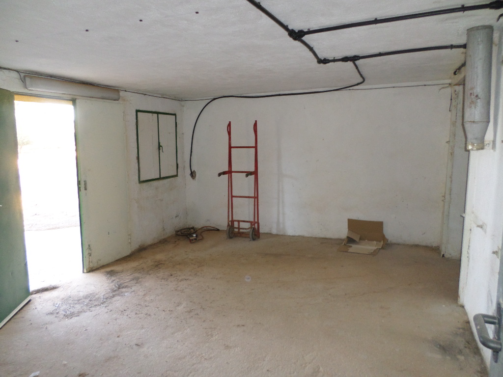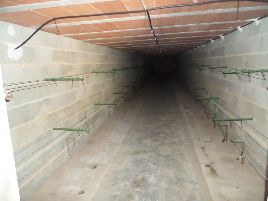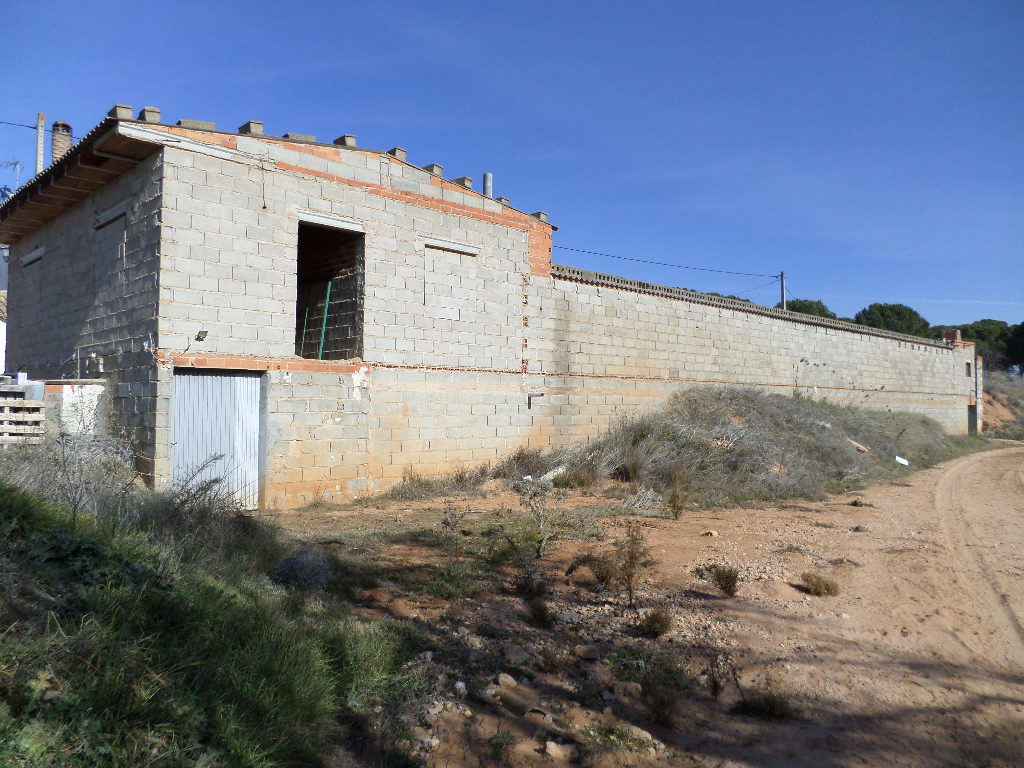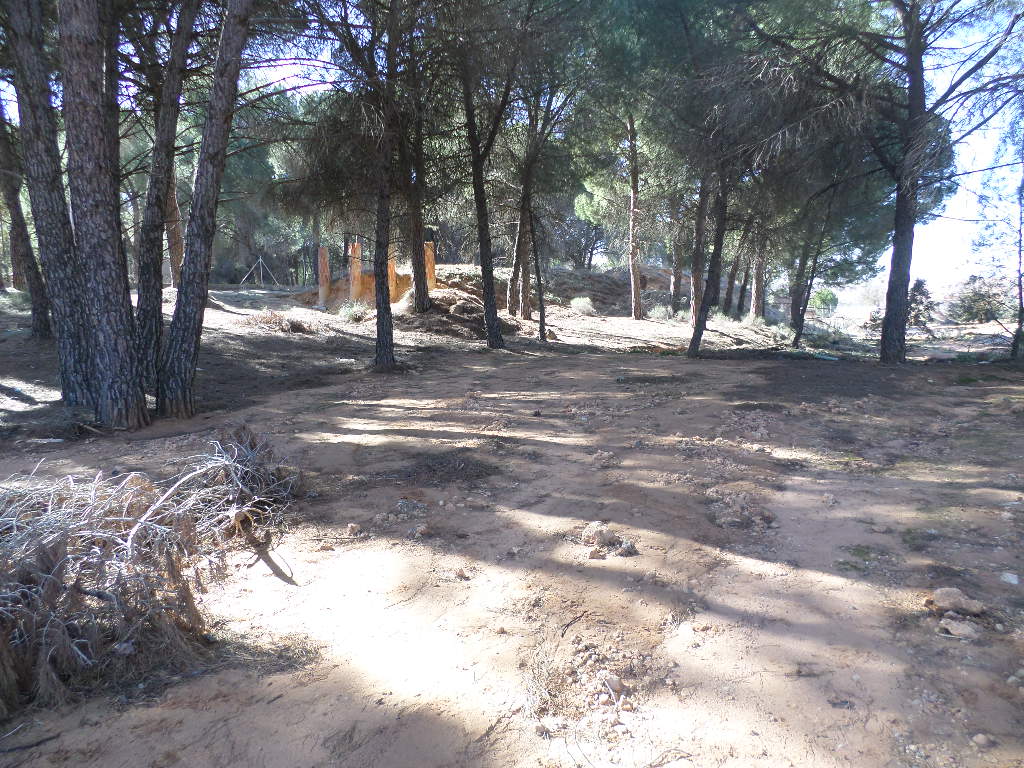 En la parte delante hay una gran superficie de terreno en blanco + una construcción de unos 100m2, la cual iba a ser como una cocinilla y abajo habitaciones. En la parte trasera hay varios sótanos equipados, y al fondo hay otros 2 sótanos alrededor de pinar.